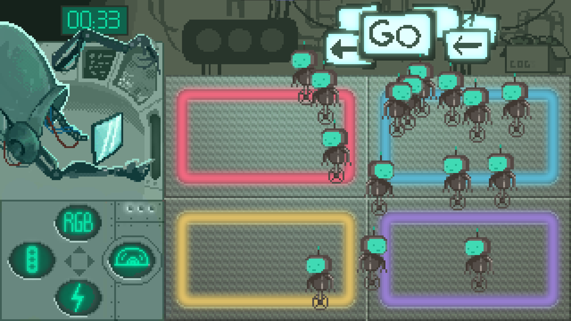 This is a game about masking. Play as a human in a robot costume infiltrating a robot factory, blending in the crowd to avoid being discovered by the evil Overseer.
